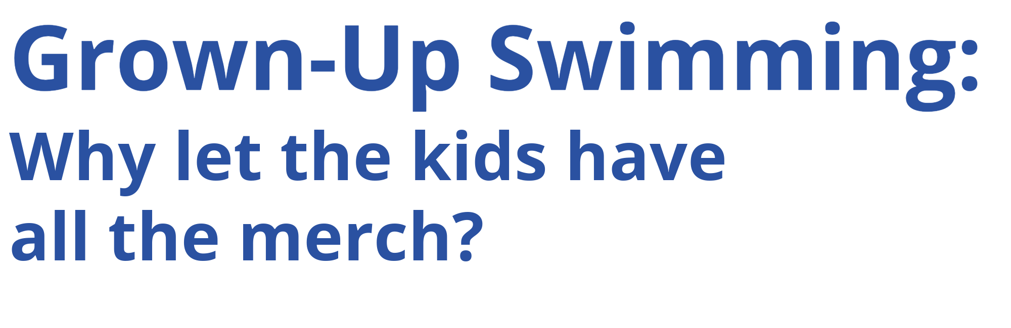 Our new merch store is live. Are you a Grown-Up? Do you swim? Does society require that you wear clothes in public? Then you should grab some Grown-Up Swimming Swag!